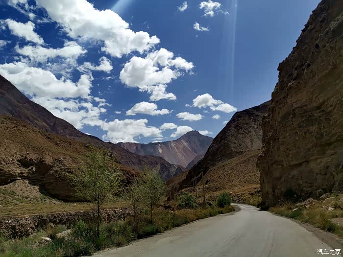 缓慢的车速,也便于途中拍照。虽然出发前多次看过奥维的三维地图,知道此处的山势比较险峻,但身临其境,尤其是驾驶补胎后胎压一半的车子,行驶在无护栏的山道上,看着刀劈斧削般的山脊,心中不慌就是假话!