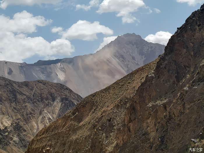 此后到二只哈拉垭口,虽然只有18km左右,但是从3650米抬升到4300米,鼓膜明显作响,必须做吞咽动作。这一段是最艰难最陡峭,也是景色最美的路段了。放眼望去,这里似乎是最高点了,刚才需要仰视的巍峨山峰,都逐渐可以平视。在掠过山峰的白云下,或明或暗的山头纤毫毕露。