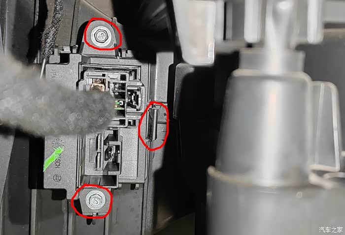 红圈里头是鼓风机控制模块,灰色的是电机插头,捏住卡子就可以轻松取下来