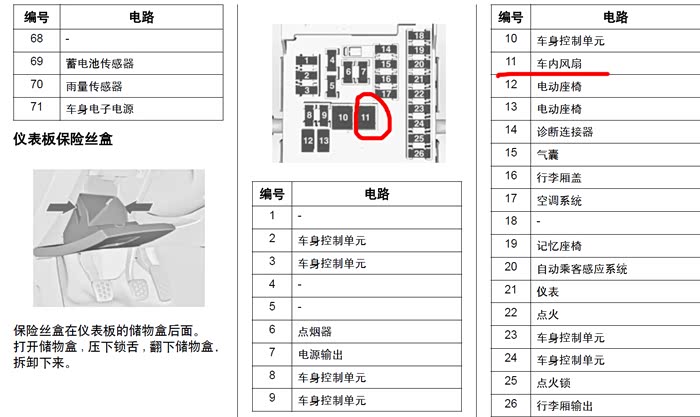 第一反应是查保险丝,鼓风机的保险在车内11号,打开方向盘下边的储物盒就可以看到