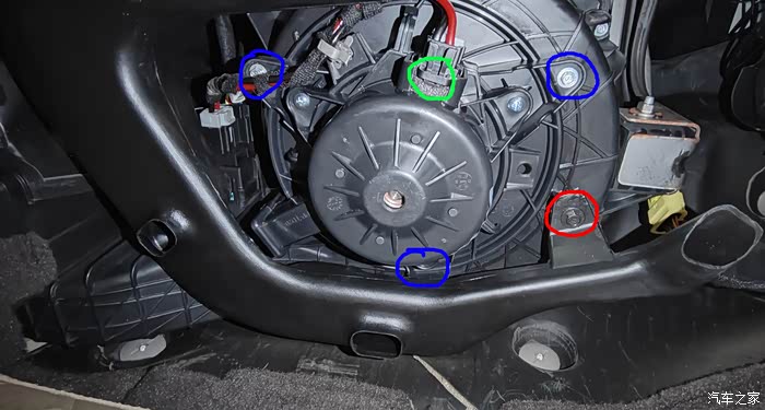 鼓风机容易拆,先把地板的风管拆了,只有一个螺丝