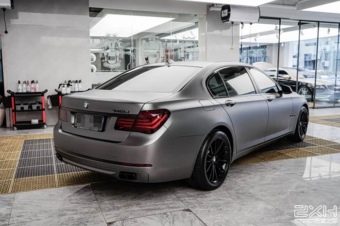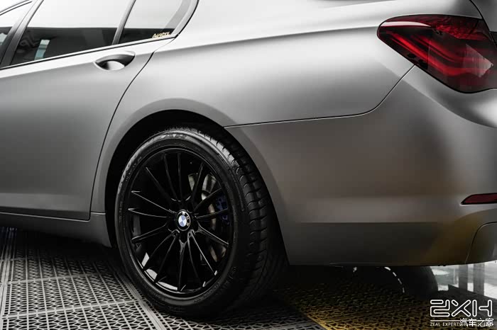 双出的排气,与后杠一体式的方形尾喉更适合7系这种大型行政轿车,看起来很稳重。