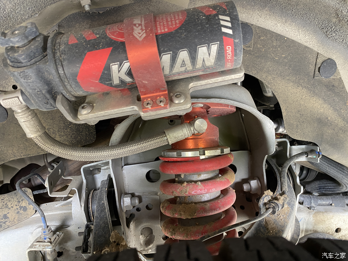 原厂配备的AT胎,轮眉上方加装了铆钉的造型。内侧隐藏K-MAN氮碱。这些官方出厂的改装配件,想不开它去越野都难。