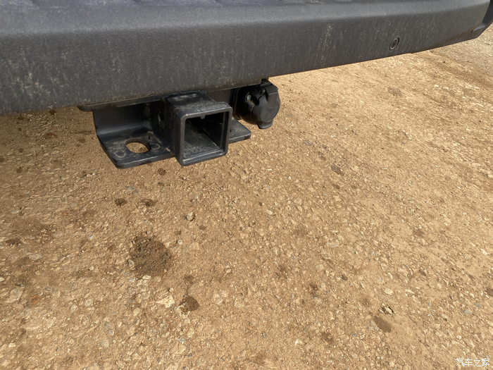 尾门也另外加装了气弹簧,虽然没有配备电动,但是加上阻尼感,有很好的缓冲作用。尾门下面,自带了拖车钩和电源,这个配置也基本可以满足露营的需求了。