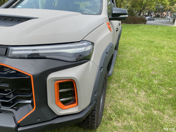 外观上最吸引我的是前脸,是由钢琴黑的中网配上MAXUS的LOGO,喷砂处理的防爆漆面,完全配的上它牛魔王的称号,配上全金属的保险杠已经很有越野的氛围感了。