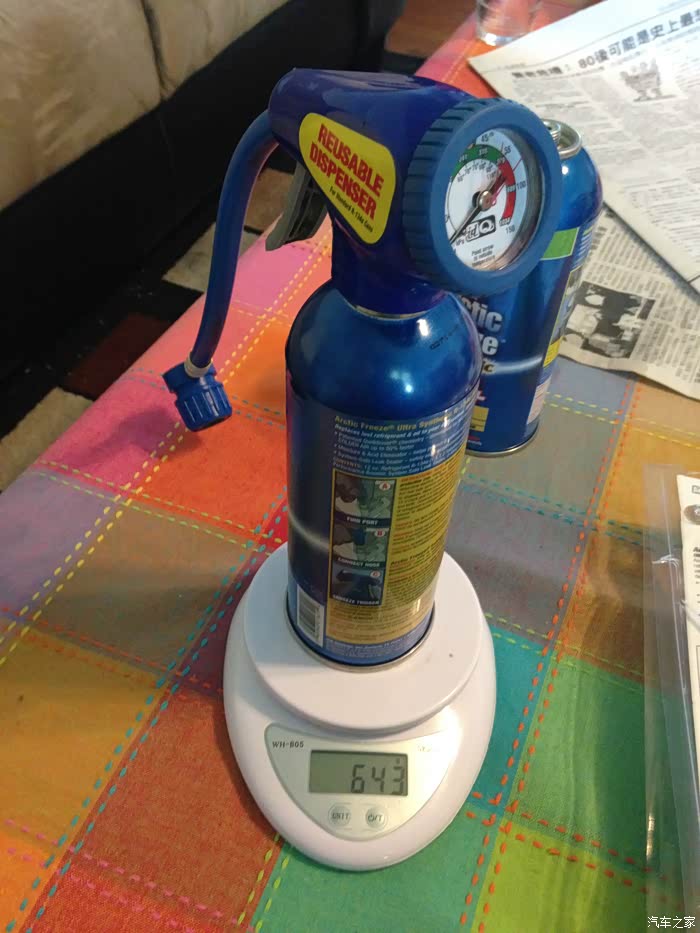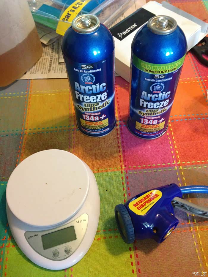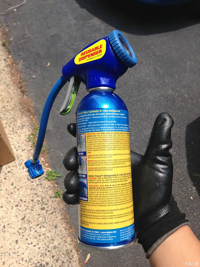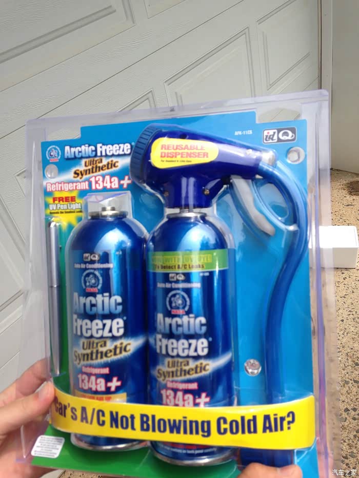 今天要搞得是车子的空调系统,我这小车,空调系统有些慢漏,去年充过制冷剂,到了今年就不行了。差不多就是一年的事儿。外面修理店,连工带料充氟要100刀,我算了算自己搞连买工具和耗材,差不多150刀,自己搞还能练练手。所以就决定自己检修空调,我买的制冷剂是带有堵漏剂和紫外线染色剂的,这样不但充上了以后能制冷,而且有可能堵上慢漏处,如果继续渗漏,我可以用紫外线灯找出泄漏点,然后计划下一步维修方案。万一实在不好修,大不了以后每年入夏前补充一次,因为我已经有了设备,补充制冷剂,只用买两瓶,超市里才差不多5刀一瓶。