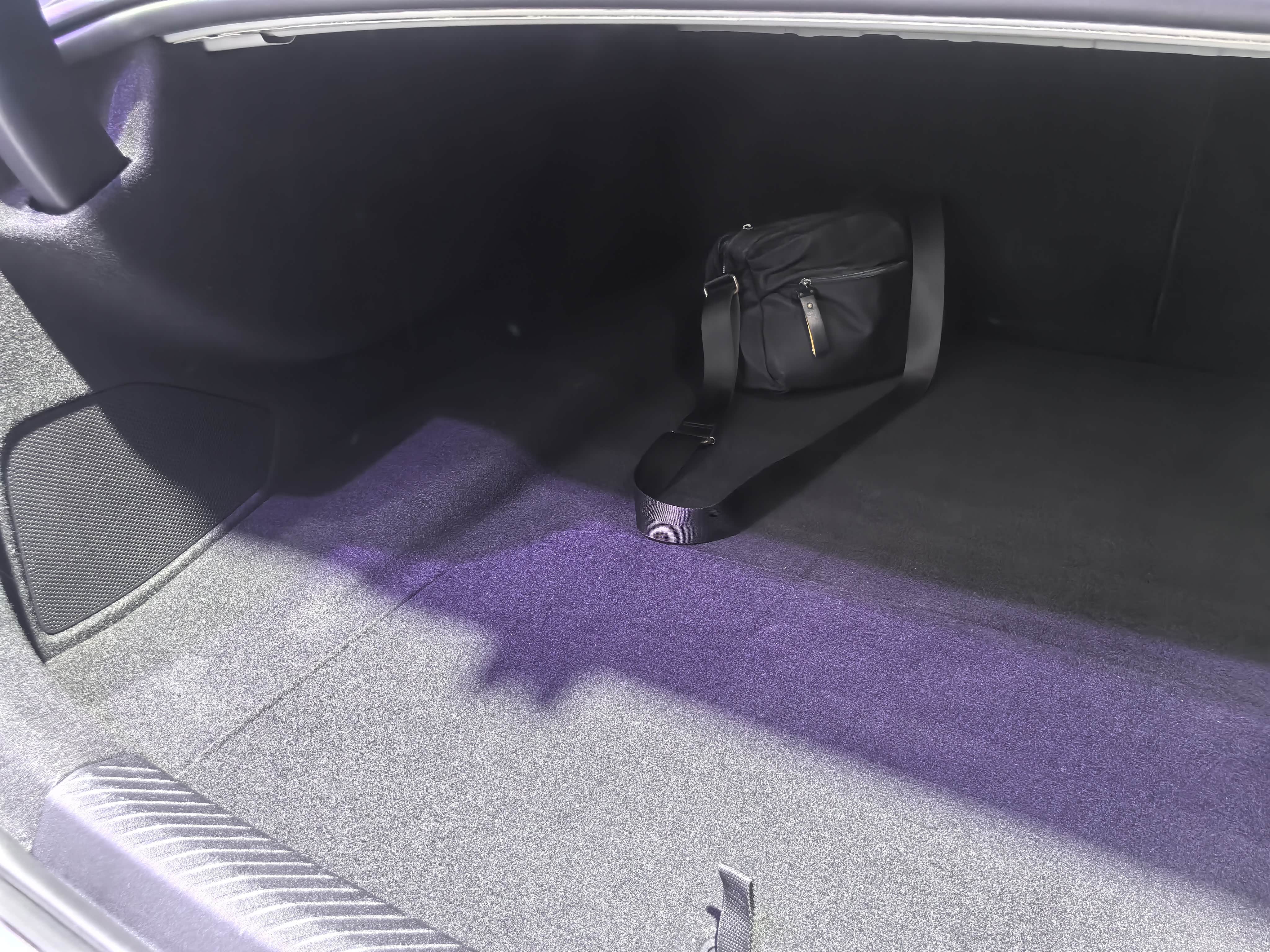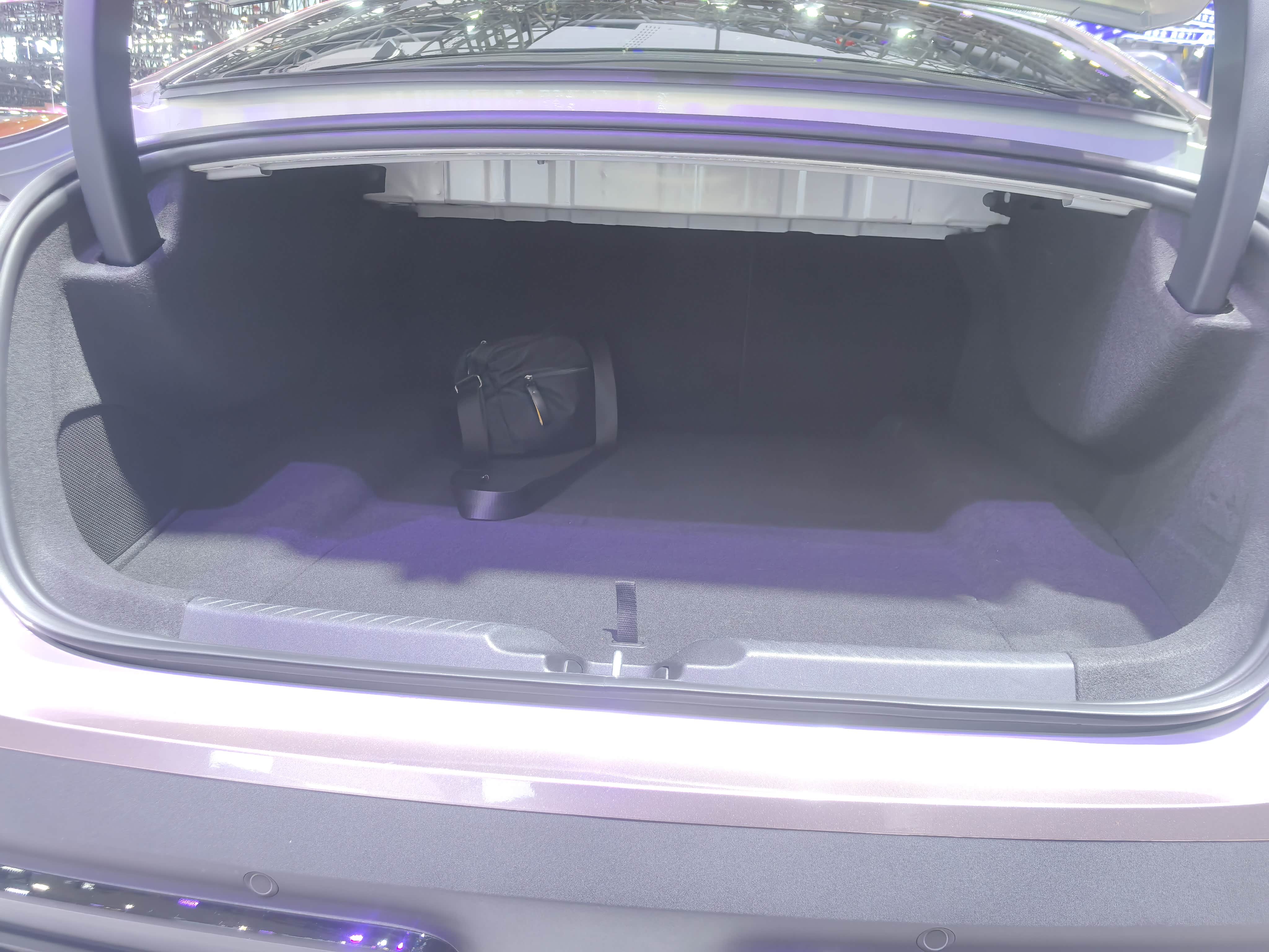 ③该车后备箱空间非常深,应该可以立放3-4个27英寸以上行李箱,另外后排座椅靠背可以放倒,虽然有轻微倾斜角度,但是对于有较长物品的放置会有些作用。