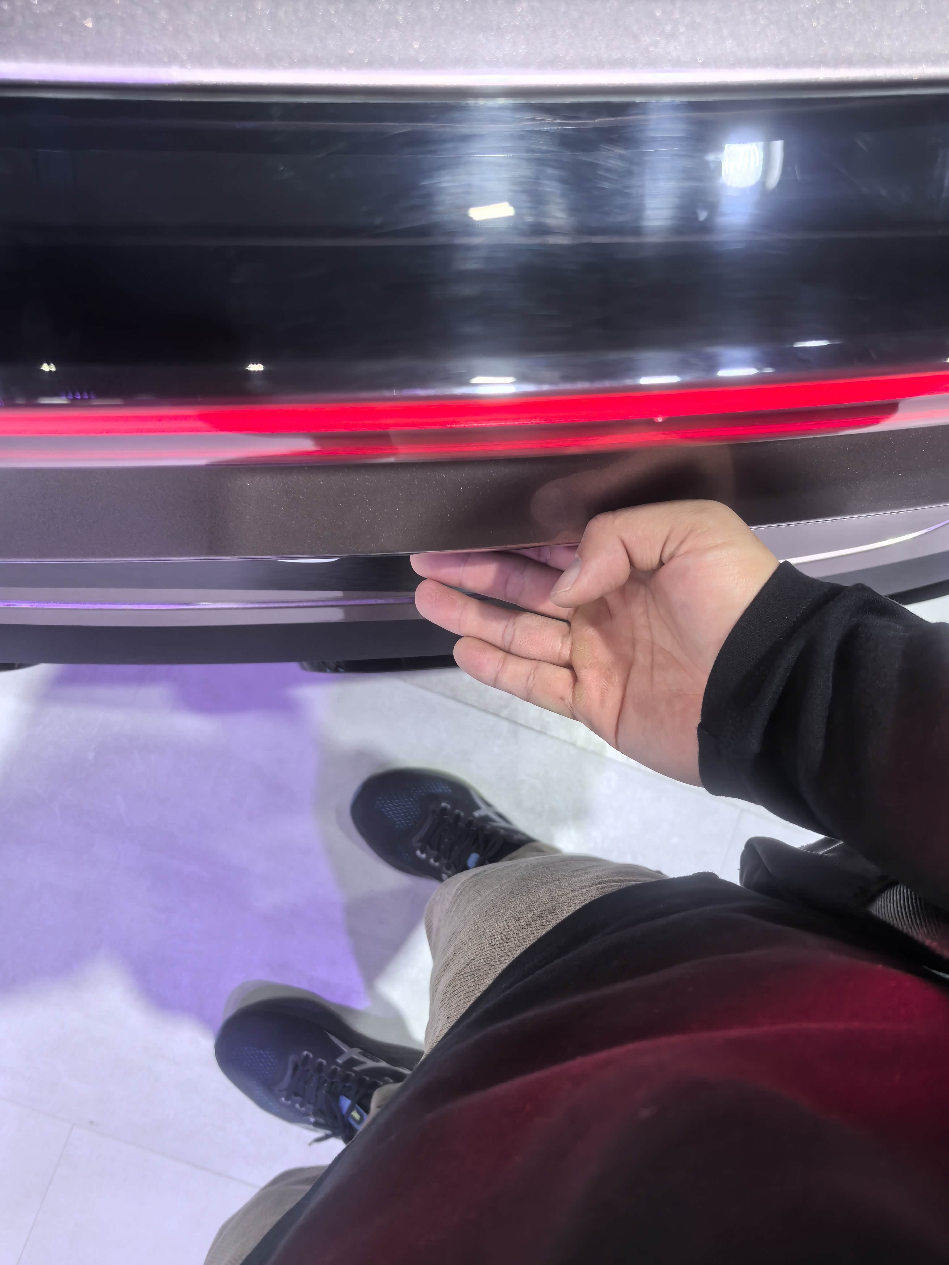 ①侧面看底盘高度不算低,简单量了下轮胎与底盘间隙,间隙有3指,车内出来脚不会直接碰到地面,底盘我认为不算低。
