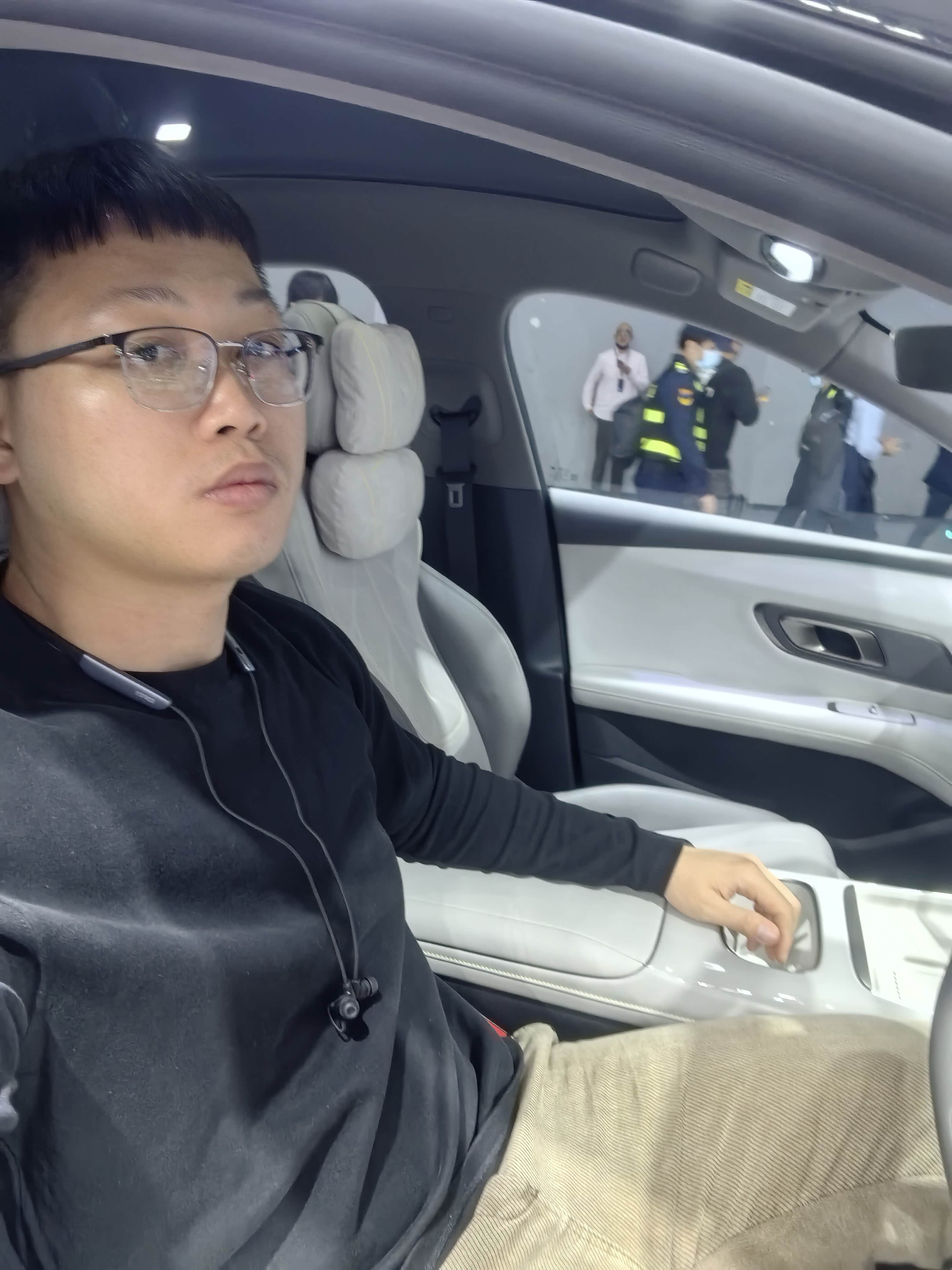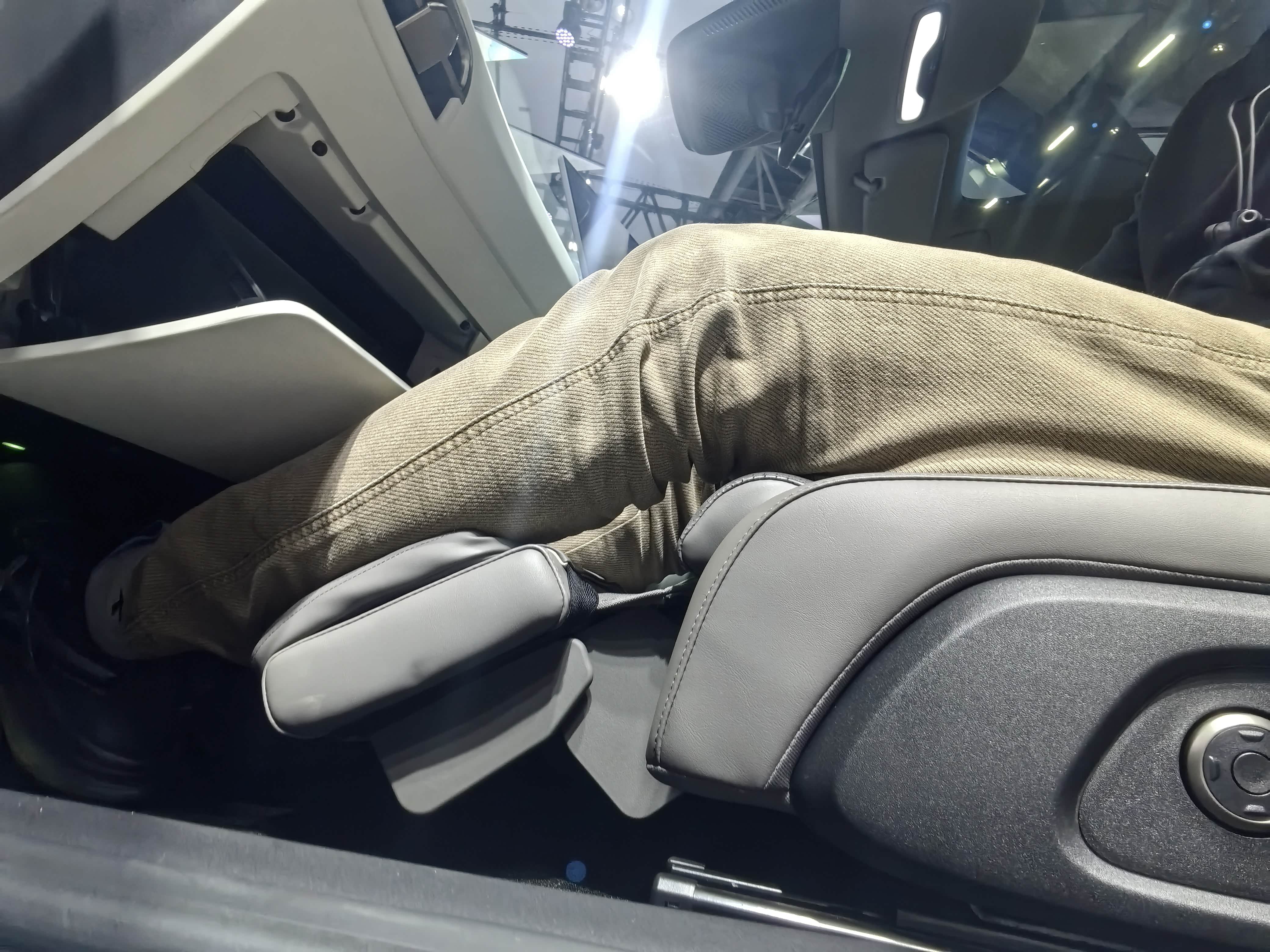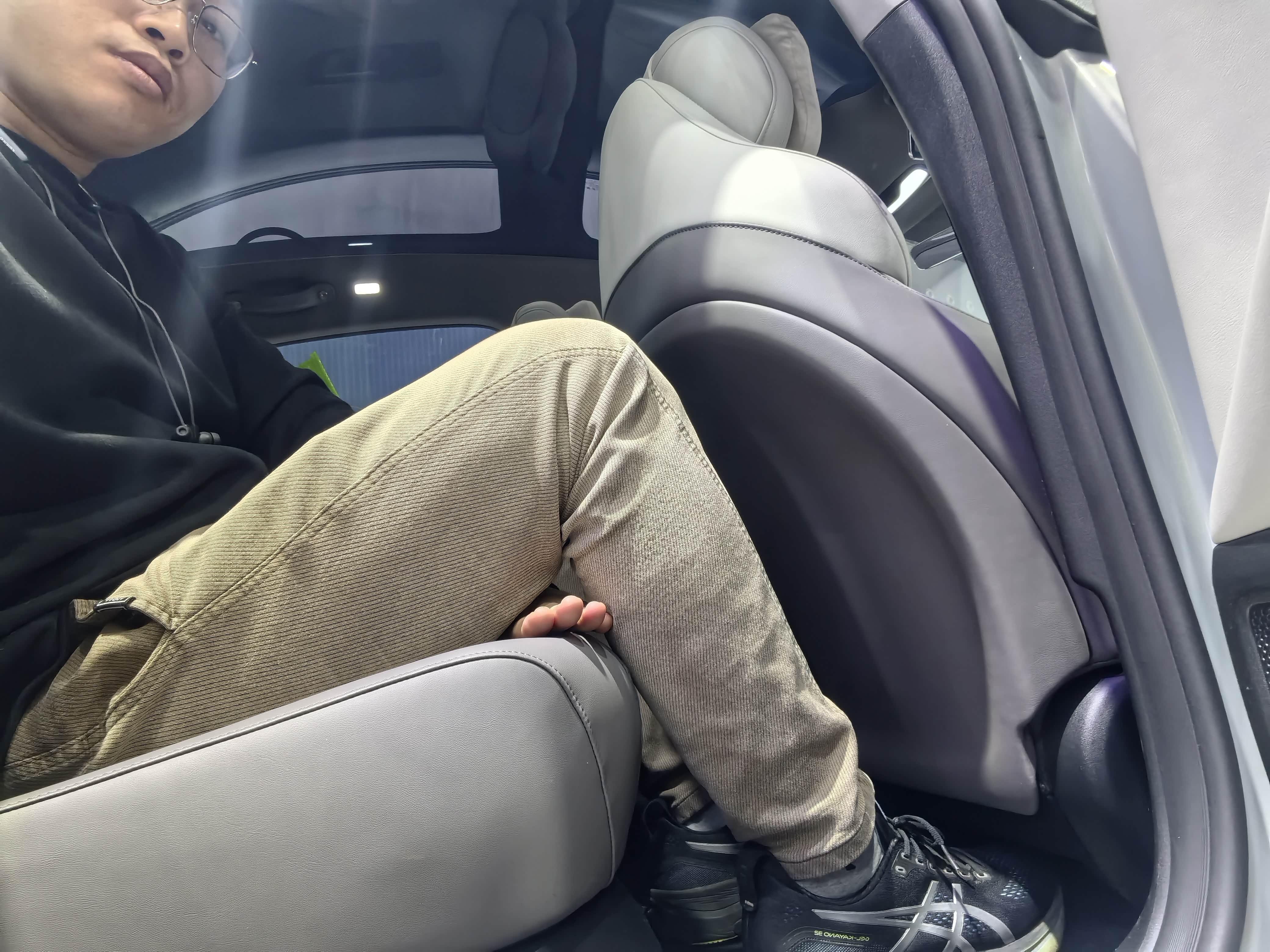 ①坐前排主驾,腿部左右空间还是可以灵活移动,只是中控台矮了些,膝盖位置高了点,这里从侧面看不够美观,另外我将底盘降到最低位置,头部空间一大手掌空间,前排空间还是挺好的。
