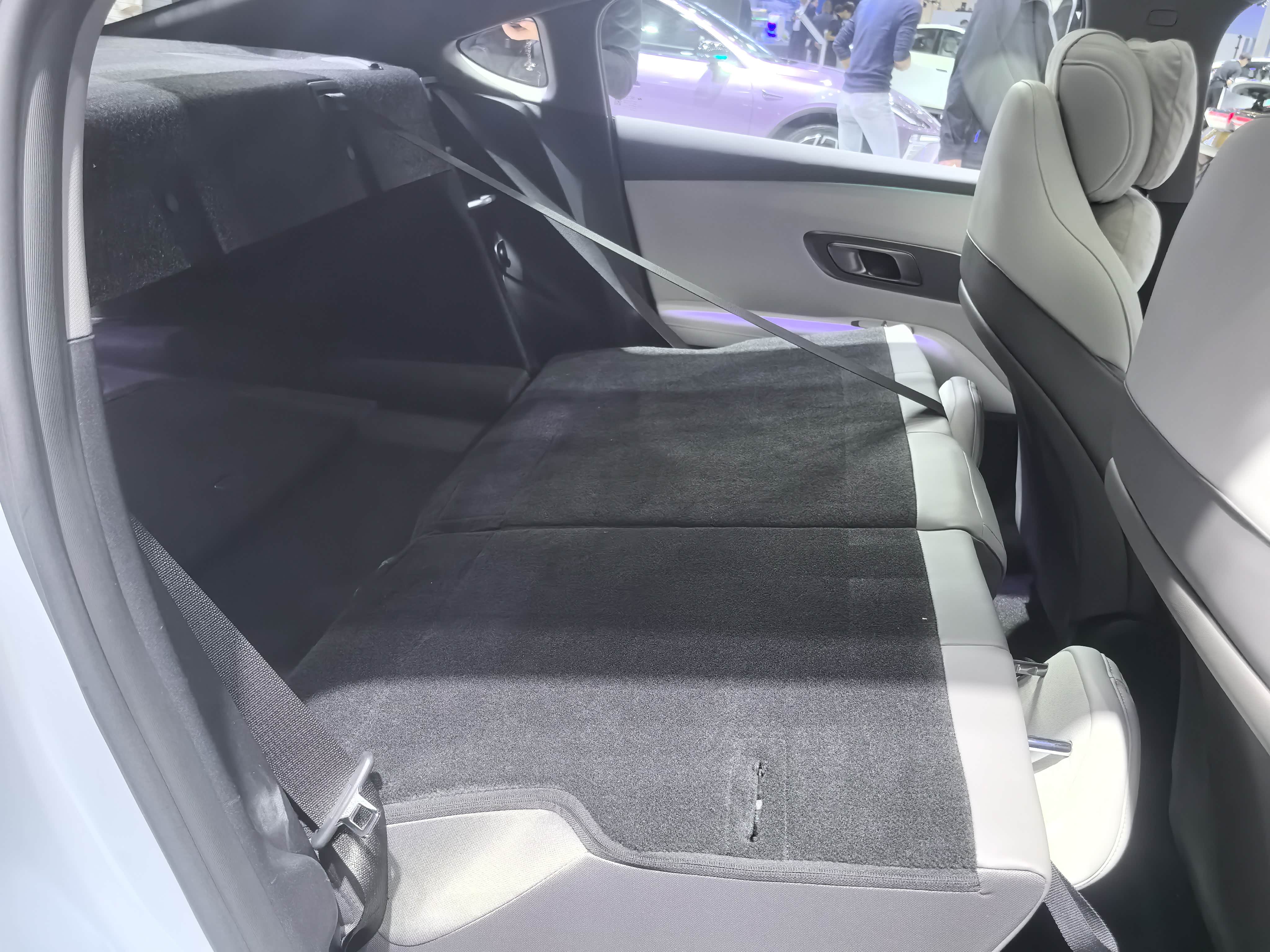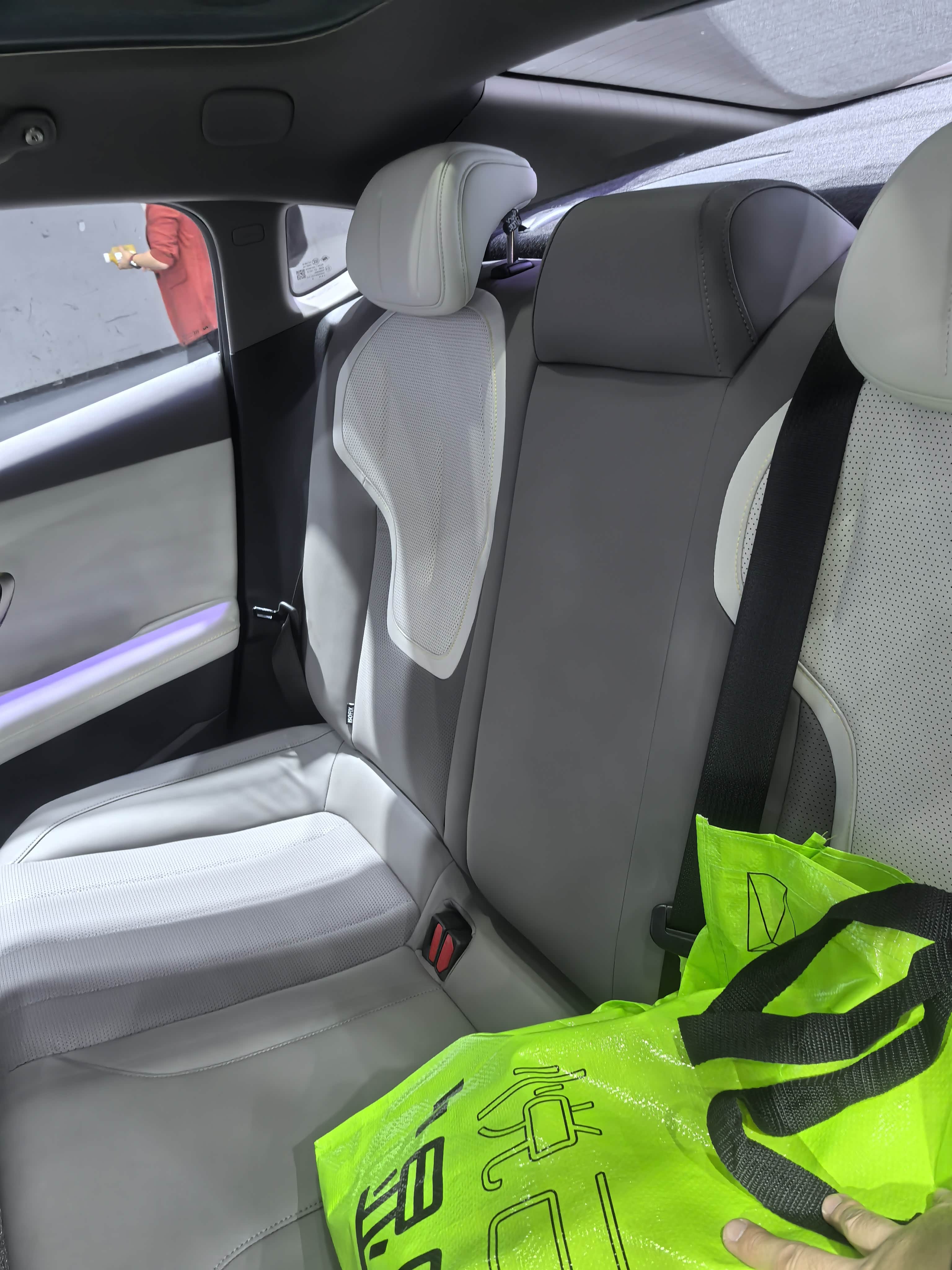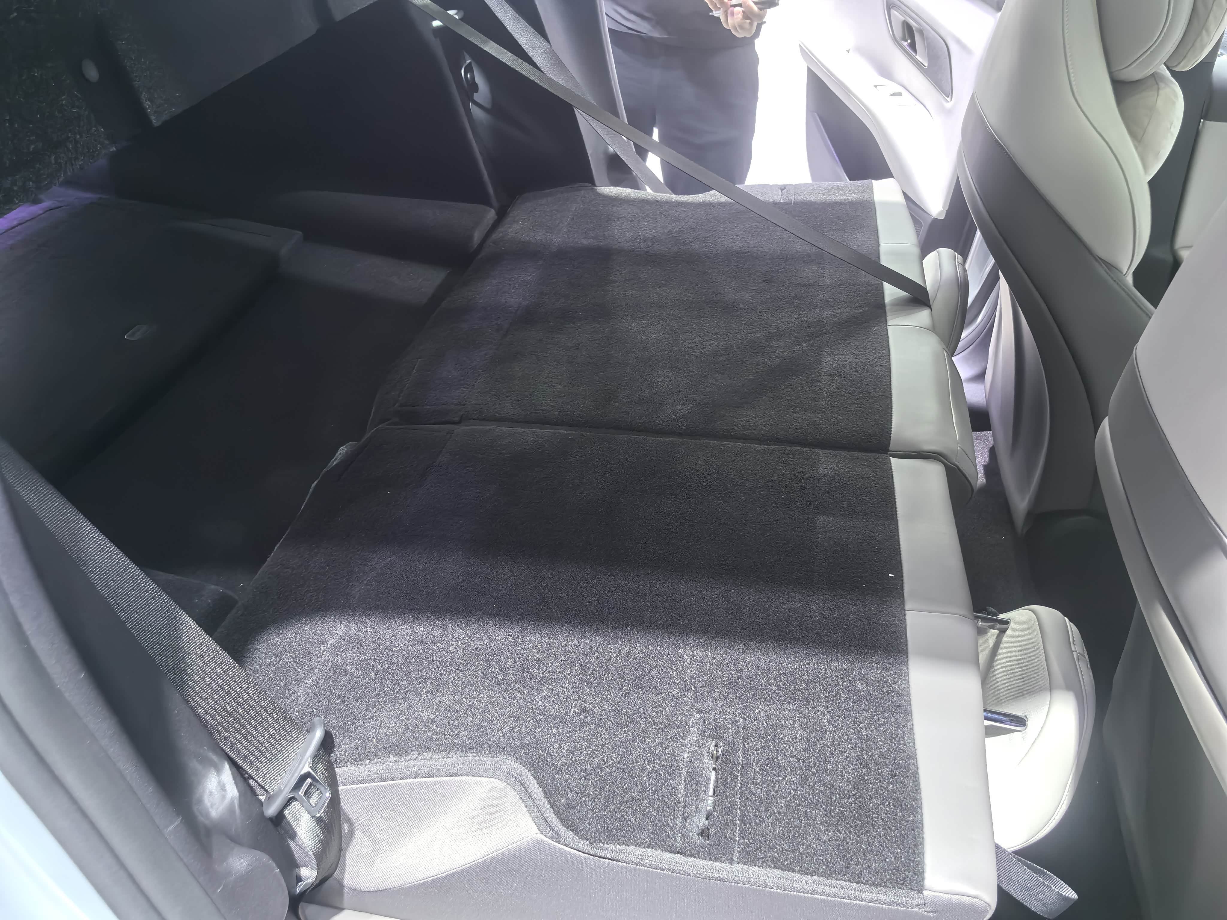 ②第二排的空间表现就差了些,我保留原本第一排乘坐位置后,我坐第二排后,其前后膝盖位置只有4指距离,这里表现一般般,另外从侧面看膝盖与座椅有明显的角度,略显憋屈,不舒服。而头部空间只有2指。整个后排空间表现不够好,所以坐后排的体验应该会差点。