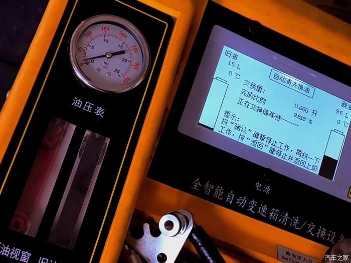 我用循环机更换的,一共16升变速箱油,我用了15升,还留下一升当作助力油使用。这机器更换方便快捷,可以看到旧油很脏,估计十几万公里没换过了。