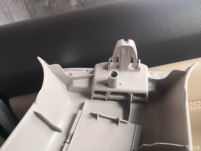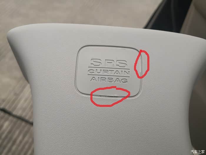 通过论坛里车友们拍的B柱内饰外壳的照片,只有上、下各一个卡扣,没有螺丝固定,那就好办了(刚开始拆,百度拆法的时候说在SRS标志的后面有螺丝,要撬开这个标志,差点儿硬撬把这个板搞坏了)。