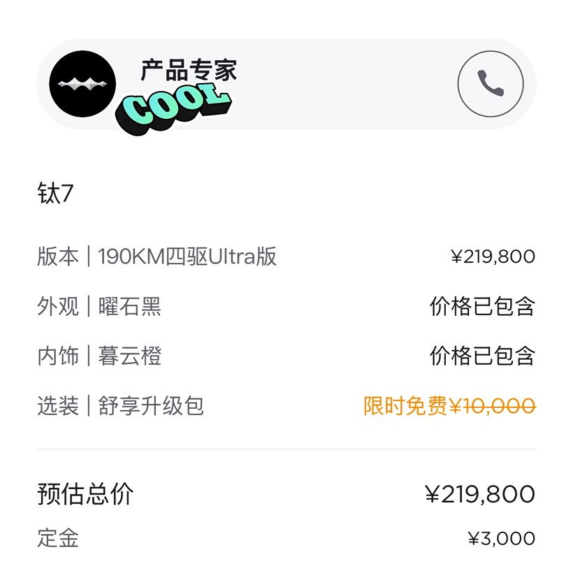 相关车型:钛7 2025款 190KM四驱Ultra版