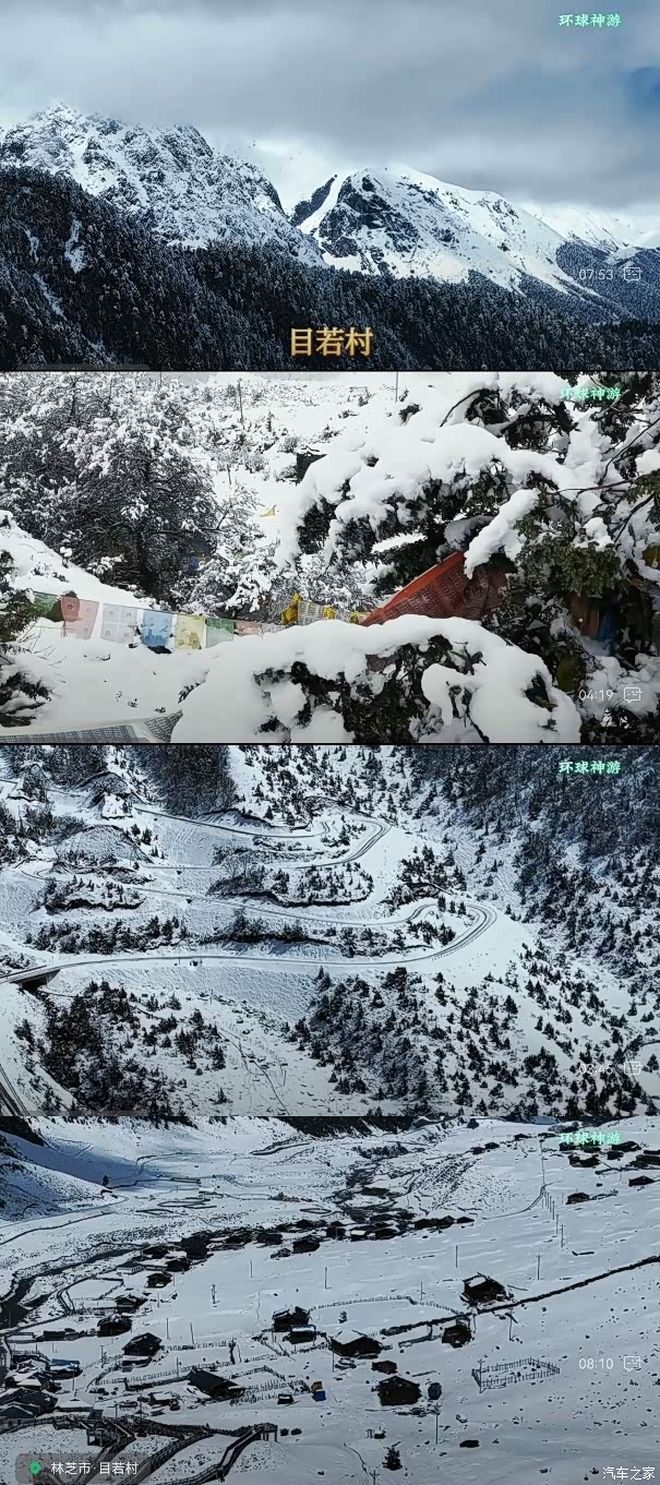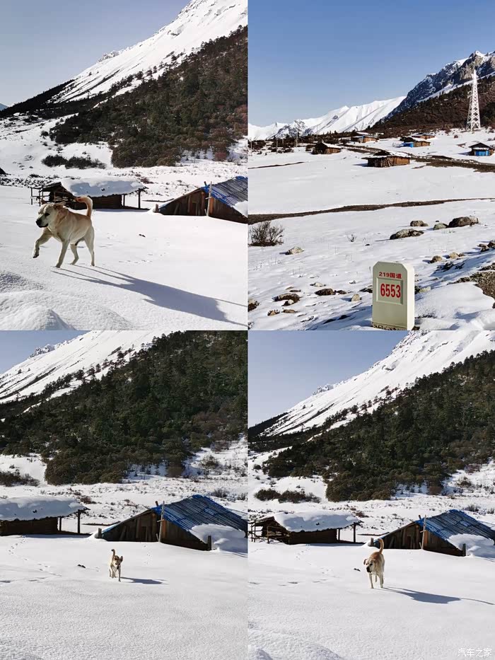 在目若村驻车一晚,第二天准备翻4498米昌拉垭口,距垭口1.7公里,海拔4300米时被暴雪困在垭口,幸亏大哥在途中拍下救援电话,先自行脱困,克林大哥说出发前网上买的铁防滑链,第一次用就全部断了,脱困打滑,无法前行。最后只能打电话找救援…然后由铲车开路,护送他们三台车返回目若村。前一天驻车地已经积雪高达半米,无法驻车。219国道目若村养护站的扎西尼玛把他们救援车全部开出车库,让他们三台房车在工程车库驻车。世上好人多呀。为目若村的扎西尼玛点赞!