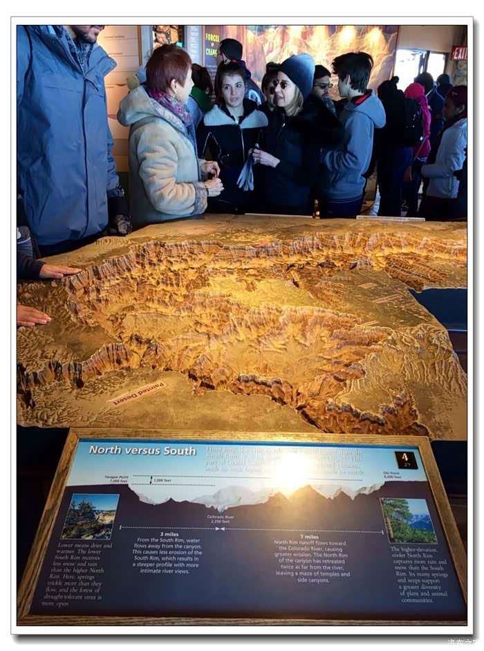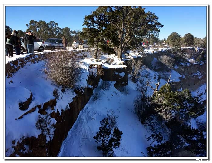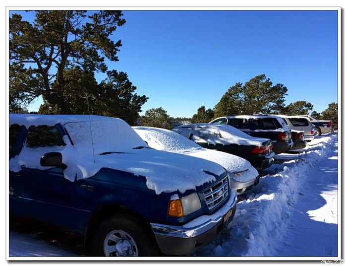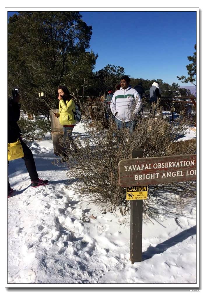 第二天早上10点,我们开车进入大峡谷国家公园,这时扫雪车已清理出部份路面,我们将车停在景区游客信息中心,换乘大巴前往几个观景台。