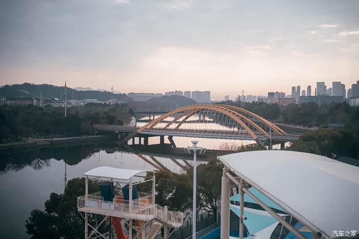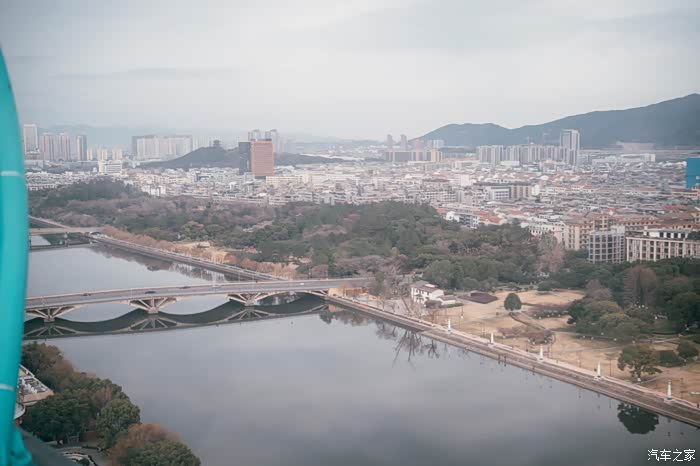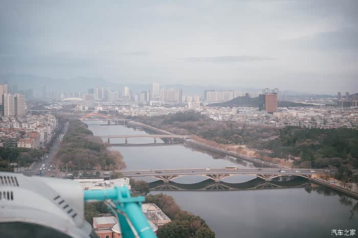 远处是义乌的城区,天空不是特别美丽,当时随着摩天轮的上升居然出了太阳。