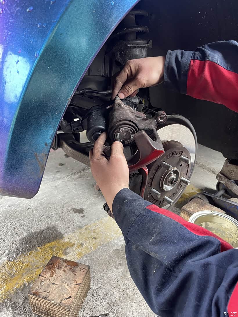 而且这车原厂刹车片不带报警,也没有那个最低刻度铁片,外面居然还有点厚 ,里面刹车片磨光了也不知道