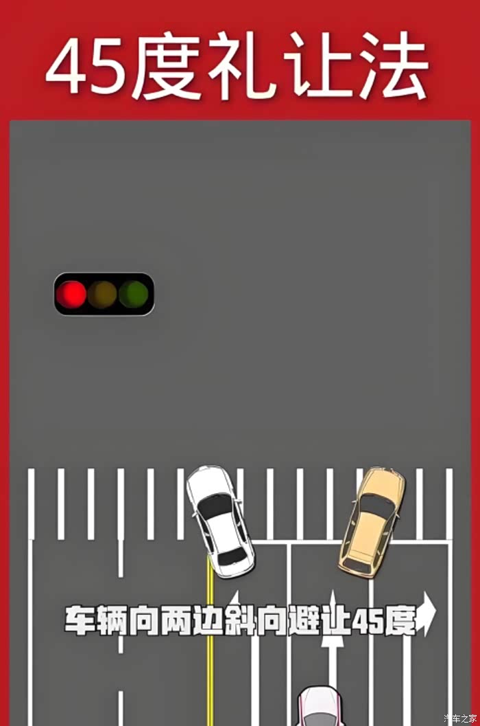 45 度让路法”是指在道路允许的情况下,当遇到执行任务的特种车辆(如救护车、消防车、警车等)时,两条车道上的车辆同时向自己左右前方 45 度角侧身转向,从而在逼仄的空间内为需要紧急通行的车辆让出“生命通道”。
