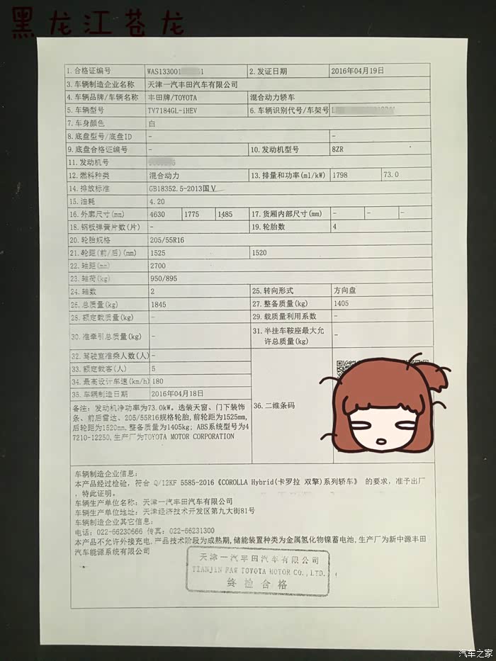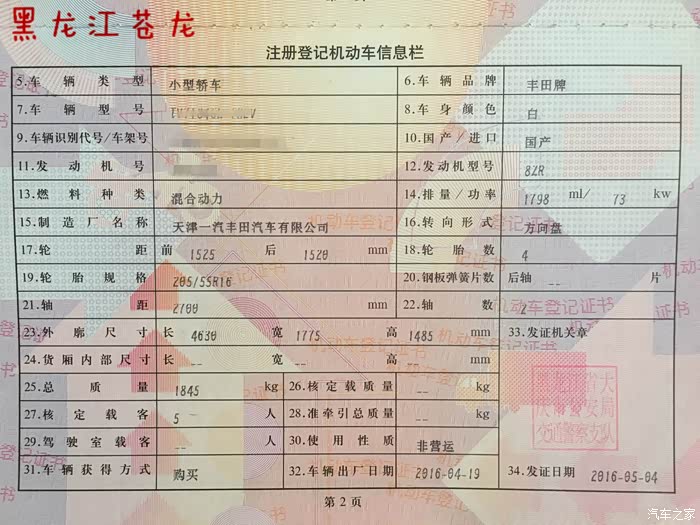 卡罗拉双擎于3月份订车,4月底提车 5月4号上牌。期间有点小插曲也都解决了。