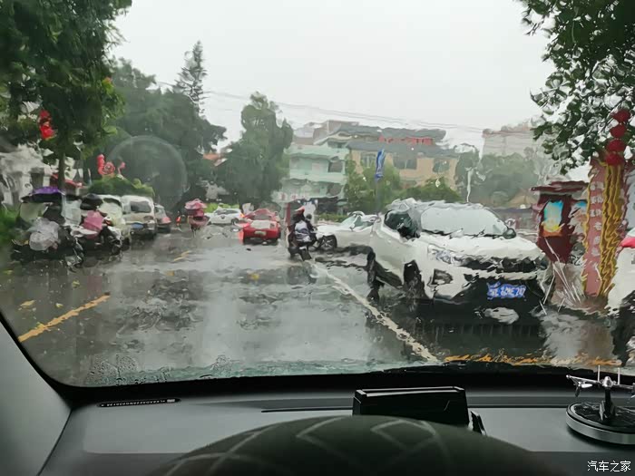 再说说雨天驾驶感受,听觉上,雨打在车顶跟打在铁皮屋顶一样,那是够吵的。涉水问题,还没走过深水地方,不清楚,但是走湿滑路面,还好,没有特别漂的感觉。