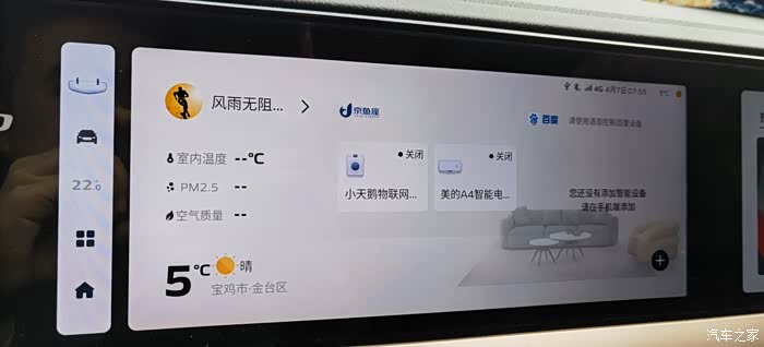 4、此外车内的摄像头可以使用了,但是聊胜于无,功能很鸡肋;智慧生活新增了京东关联账户,可以在车上远程控制家里的家用电器,比百度方便实用;