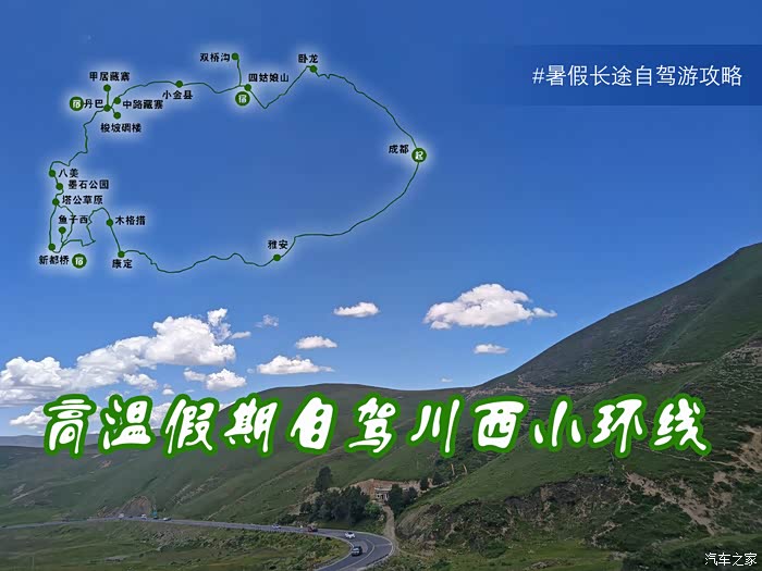 骄阳似火,酷暑正盛,正是夏季最为炎热的时节。七月中旬以来,四川多地连发高温橙色预警,成都、德阳、绵阳、乐山一些地方,还发布了高温红色预警。临近月底单位依例放高温假一周,空调冷气虽可延喘续命,避暑解毒还得靠大美川西。稍事准备后携家人驾车出发,走川西小环线避暑解毒去也!