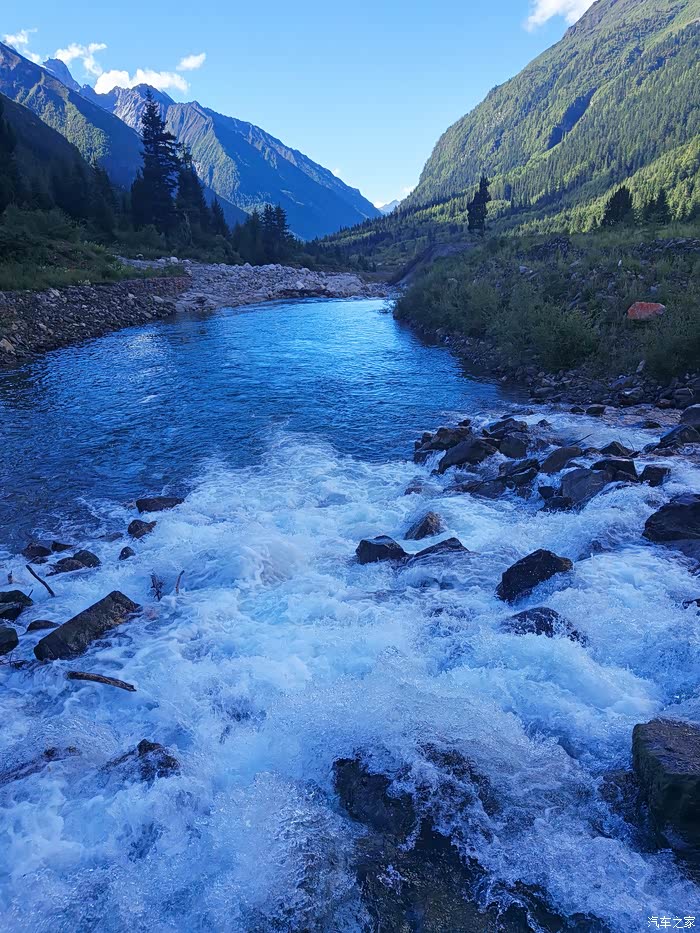 DAY2 虽然四姑娘山以前来过两三次了,但这回既然路过还是不能错过,谁叫它号称“东方的阿尔卑斯山”呢!不过行程上仅安排了一天,就只游览了接待条件最好也是最省力气的双桥沟景区。相比于秋天的景色,夏季的双桥沟少了些红、橙、黄的暖色和斑斓,但色彩更显得协调和纯净,养眼的蓝、绿、白色彩、清新甘甜的森林氧吧,加上二十几度的环境温度,带给人们的是一种极致的享受。游览了双桥沟后,半下午时驱车前往丹巴,这段路约110公里,正常行车约3小时,晚上住在甲居藏寨预订的客栈。