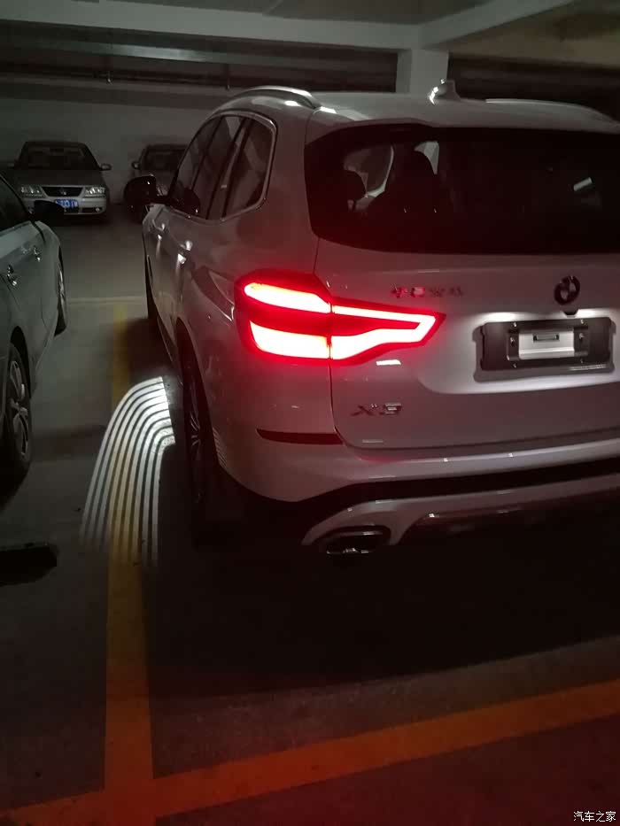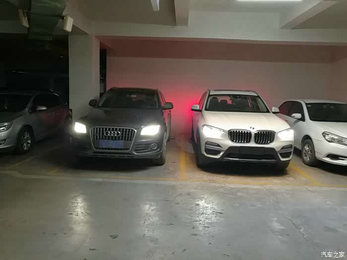 7、下面来说一下灯的感受,X3的自适应LED远近光灯,LED雾灯比Q5的氙气灯更高档,但灯厂出品的灯绝不是泛泛之辈,虽然是5年前的设计了,Q5的灯一样是很醒目的,日间行车灯很令人注目,晚上大灯点亮的效果比X3还要好一些,特别是尾灯的感觉比X3好很多。X3的迎宾地毯灯是个高B格的东西,喜闻乐见。X3的车内照明灯做的确实不错,比Q5的要高档。
