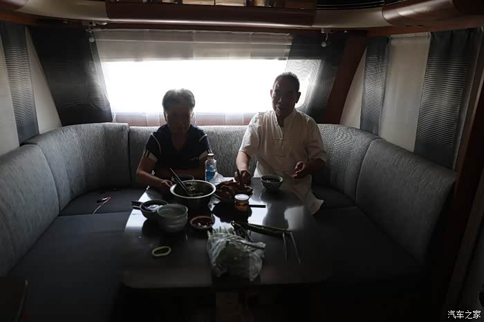 阿德瑞512设计最多可以住5人,后面两个单人床中间连起来就是一张2.2米宽的大床,可以睡三个人,把桌子降低,前面C型沙发就可以拼成一张双人床,中间用硬帘隔开就是两个卧室,不过由于两个老人住单间习惯了,而且晚上要经常起夜,为了照顾老人方便,女儿和奶奶睡后面的单人床,爷爷自己睡客厅,我们俩睡奔驰,把中间和后排座椅全部放倒,就是一张双人床,睡两个人正好。去年第一次拖房车自驾游发现只要解决房车的用电问题,房车完全可以不用依赖营地,于是把房车改装了太阳能发电系统,供电没有选择发电机方案主要考虑噪音和环境污染问题,太阳能是清洁能源,通过逆变器转成220V交流电带电饭锅、电视、电蒸锅、空调、热水器等电器没有问题,而且使用起来非常简单,不需要额外操作。房车有3个煤气灶,一般做饭时间为半小时左右。房车自带60升水箱,储水量明显不足,所以我们又携带了3个20升折叠水箱和一个10升饮用水水桶,总储水量达到130升,储水可以满足两三天用量(不包括洗澡,要洗澡还是要找个能够补充水的地方)。房车自驾是一种生活方式,更是一种生活态度,从成本角度看,房车自驾不见得比住宾馆吃饭店花费低,但这是一种非常自由、更贴近自然、环保低碳的自驾游方式,有个拖挂式房车你就可以在任何一个地方安家,是不是很惬意。