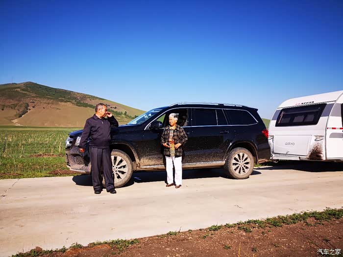 两次买车都是早就有的计划,都是因为老人而快速实施,2018年6月女儿放假回国,我们早就计划带女儿会内蒙古乌兰浩特给姥爷三周年扫墓,孩子的爷爷奶奶都是地质工作者,把自己的青春献给了内蒙古大草原,所以也想借此机会带爷爷奶奶回内蒙玩一圈,经过一天的思想工作,爷爷奶奶终于同意同行,我们非常高兴,因为拖挂房车行车时车内不能坐人,为了让老人旅途更舒服些,决定火速启动奔驰GLS购车计划,周五下班前到4S店交了定金,周一下午就到4S店交车款、办临牌、上保险,下班前提车,直接开到改装店加装拖车钩,回到家已经是临晨1点钟,简单休息一下,天亮后直接拖车上路,开始一家5口内蒙古自驾游之旅。