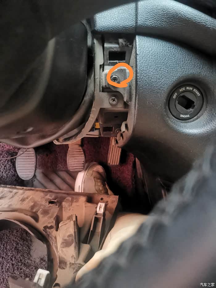 首先得把主驾驶车门这一侧的这个盖子撬开,可以看到有两颗螺丝,拧掉后就可以把下面的大灯开关面板拆下来,都是卡子放心翘