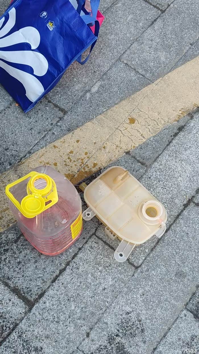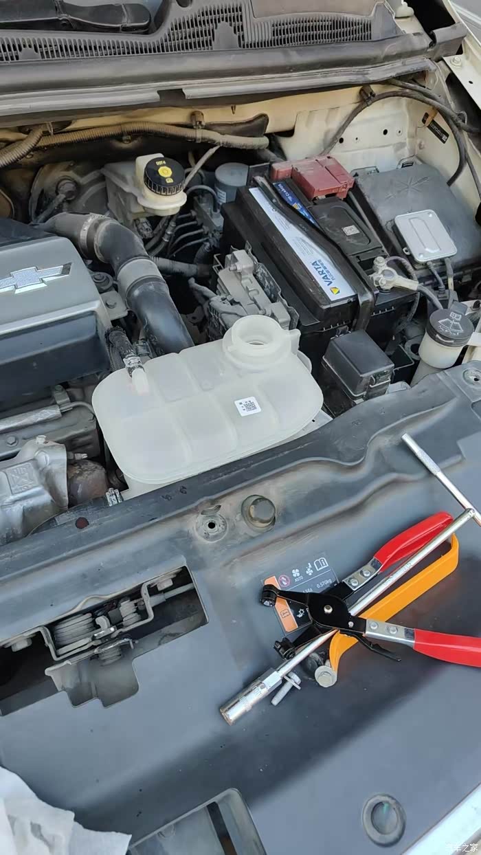 多么熟悉的画面,一样的工具一样的车一样的问题,后备箱就放着防冻液