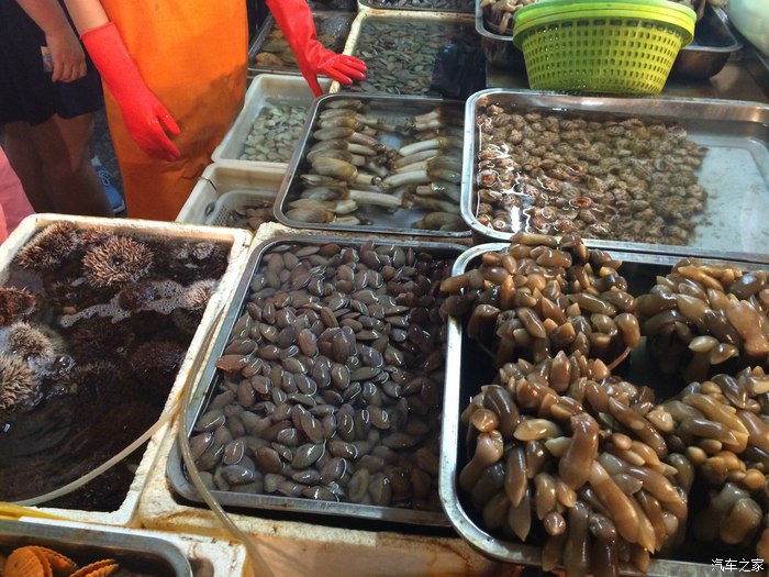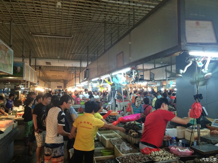 逛完后去了网友们特别推荐的第一海鲜集贸市场,里边是卖海鲜,门口是卖各种水果及纪念品