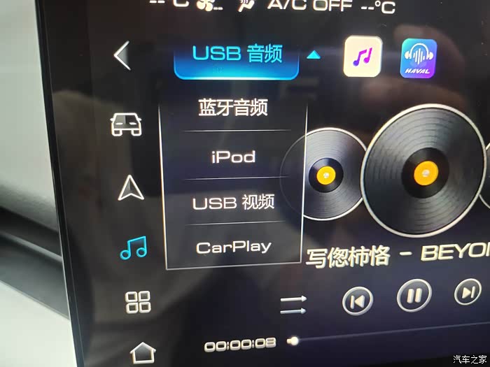最近开车听歌总觉着现在的歌有点不入耳,可能是岁数大了跟不上时代了,一直喜欢听老歌,说到老歌我最喜欢听黄家驹的,奈何在车机上搜不到所以就买了一个他的U盘,u盘的个头很小,比指甲盖大一点,插上以后不占地方,昨天插上试听了一下,当时刚一插上U盘车机屏幕就出现了提示,我按着步骤就点了进去,今天开车想要用U盘听歌时却找不到了,用手机查了一下才知道怎么用了,需要我们在车机的APP里面找到多媒体然后点进去,进去以后左上角有选项,可以选择播放音频还是视频,我买的这个是带MV的,带MV的才更有感觉