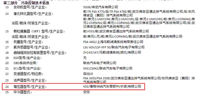 号称满身进口装备的408X涡轮采用的哪一个公司,直到今天发现了可以在机动车环保网上查询到相关信息,只需要输入车架号、发动机号后六位,点击查询即可查询出相关信息,没错,采用的是博格华纳的。