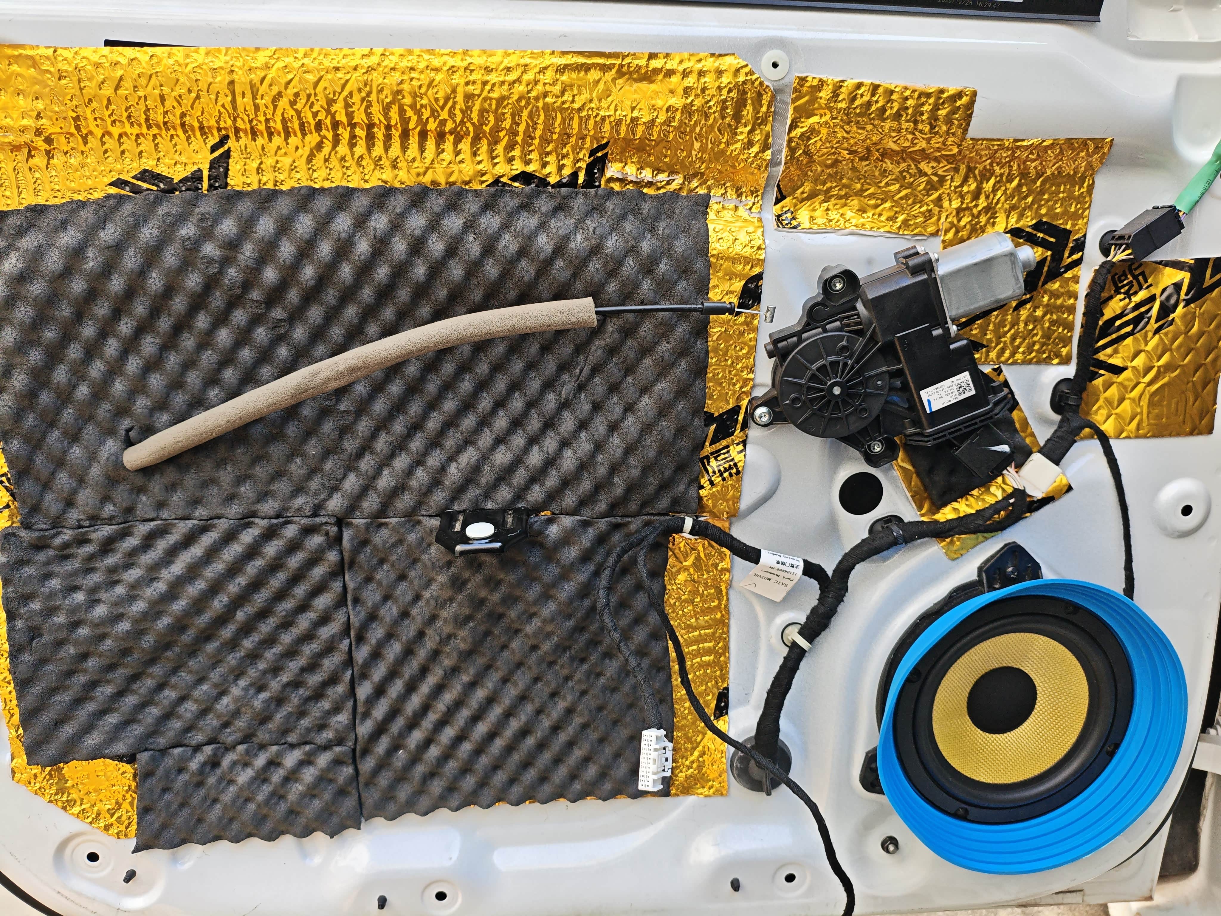 做了下隔音还是有点效果的,音乐大声点至少不会产生共振了,顺便换了下喇叭,下一步再换下高音看看,两个前门总成本两个大洋