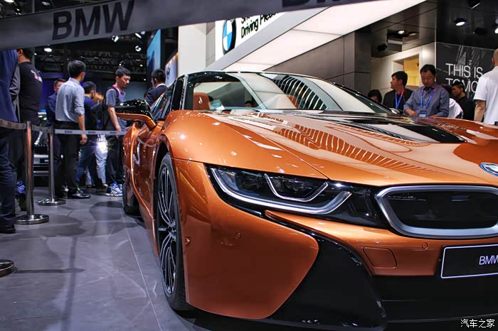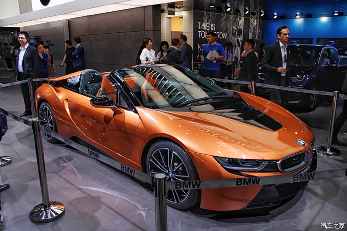 宝马这边带来了i8的敞篷版。对于本来外形就很骚气的i8来讲,敞篷版在外形除了增加软顶敞篷外几乎没有改动。i8生来就不是为了上赛道拼圈速的,就想改装车,有用来跑赛道的,也有用来走街的,而i8在我眼中就是用来优雅走街的原厂性能车。周末去兜兜风,晚上去撩撩妹,哈哈,我又在幻想了