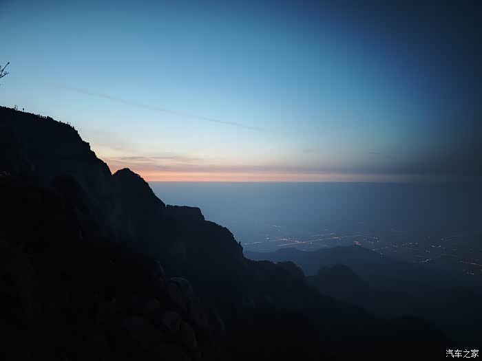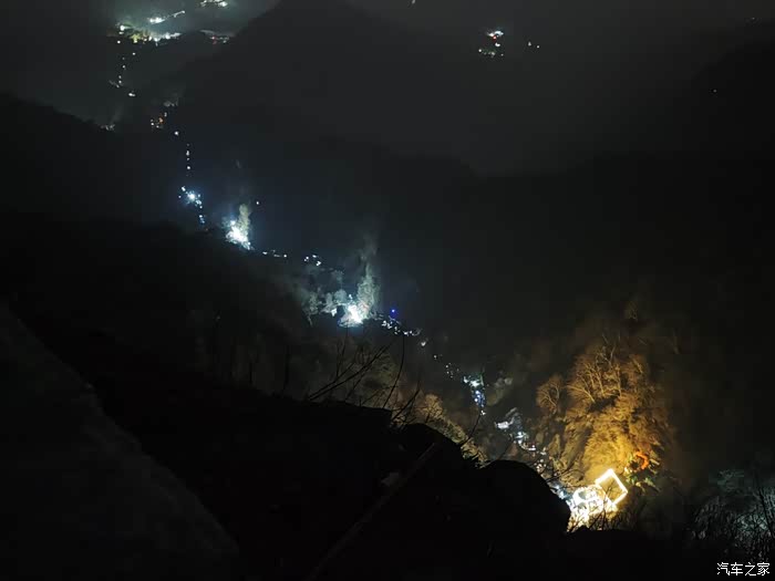 此时晚上10点多了,山下还有很多人夜爬泰山的,除了中间几个补给点有灯光,山道是没有路灯的,看到的都是爬山的手电筒照亮山谷。