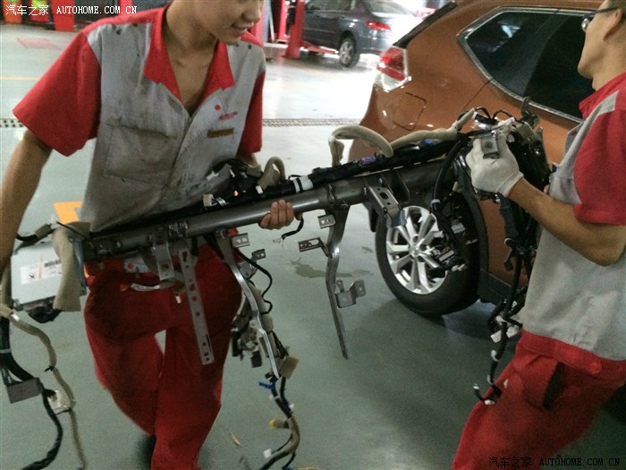 整只钢梁被抬了出来。。上面有很多接头,比如空调、仪表盘、音响等等。