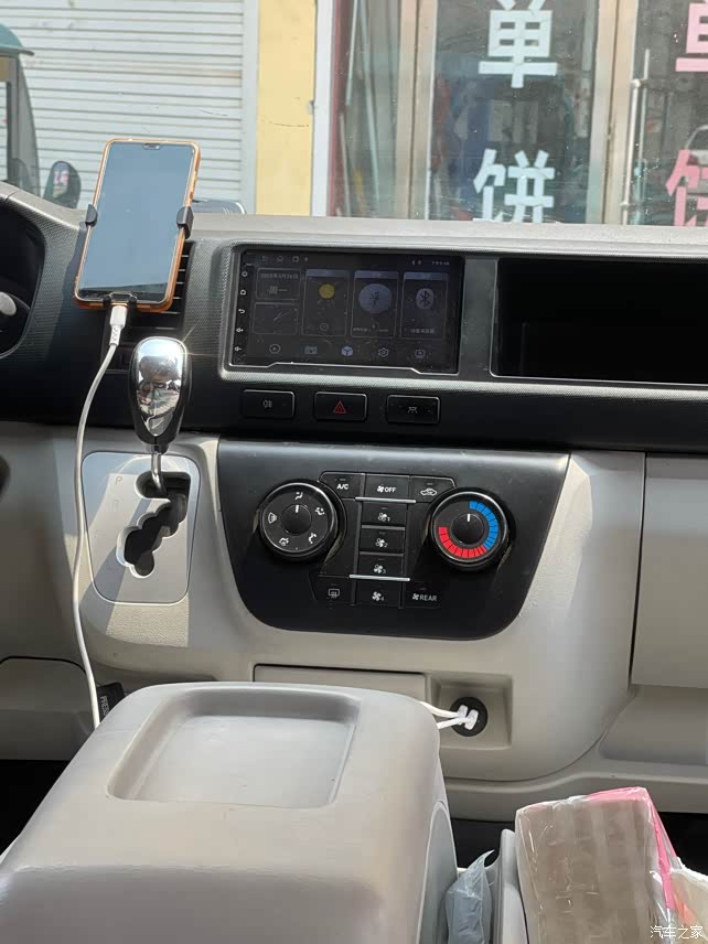金杯大海狮丰田动力版油箱大概65L左右,后空调暖风在中控台有个独立旋钮控制,标着"REAR"的就是。先开前排暖风,再拧后空调旋钮到红色区域,风量调大就行。后排头顶还有出风口可以手动调节角度。