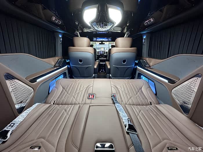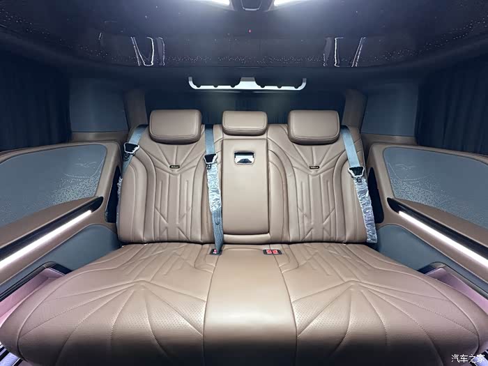 二排的航空座椅,通风,加热,按摩,旋转,腿托及记忆功能 手机无线充全部都是标配。全车都是采用了Napa真皮包覆颜色的话采用深棕色及深灰色双拼色搭配,整体的质感非常棒的。