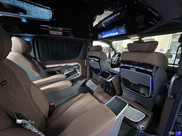 座椅与舒适: 中排超豪华座椅采用人体工学设计,皮革表面 饰以独特的菱形纹路;每一处走线,都体现了 Billionrich对于细节与品质的极致追求。