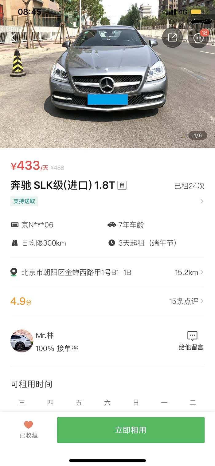 那么六一要怎么犒劳自己呢?一顿大餐或是去商场里买买买?对Tomi来说,这些对我都没有吸引力了。我最想的,还是六一去租一台好玩的车,哈哈哈,最好还是很骚的那种。于是我打开了某凸租车的软件,一台性价比极高的奔驰SLK进入了我的目标范围