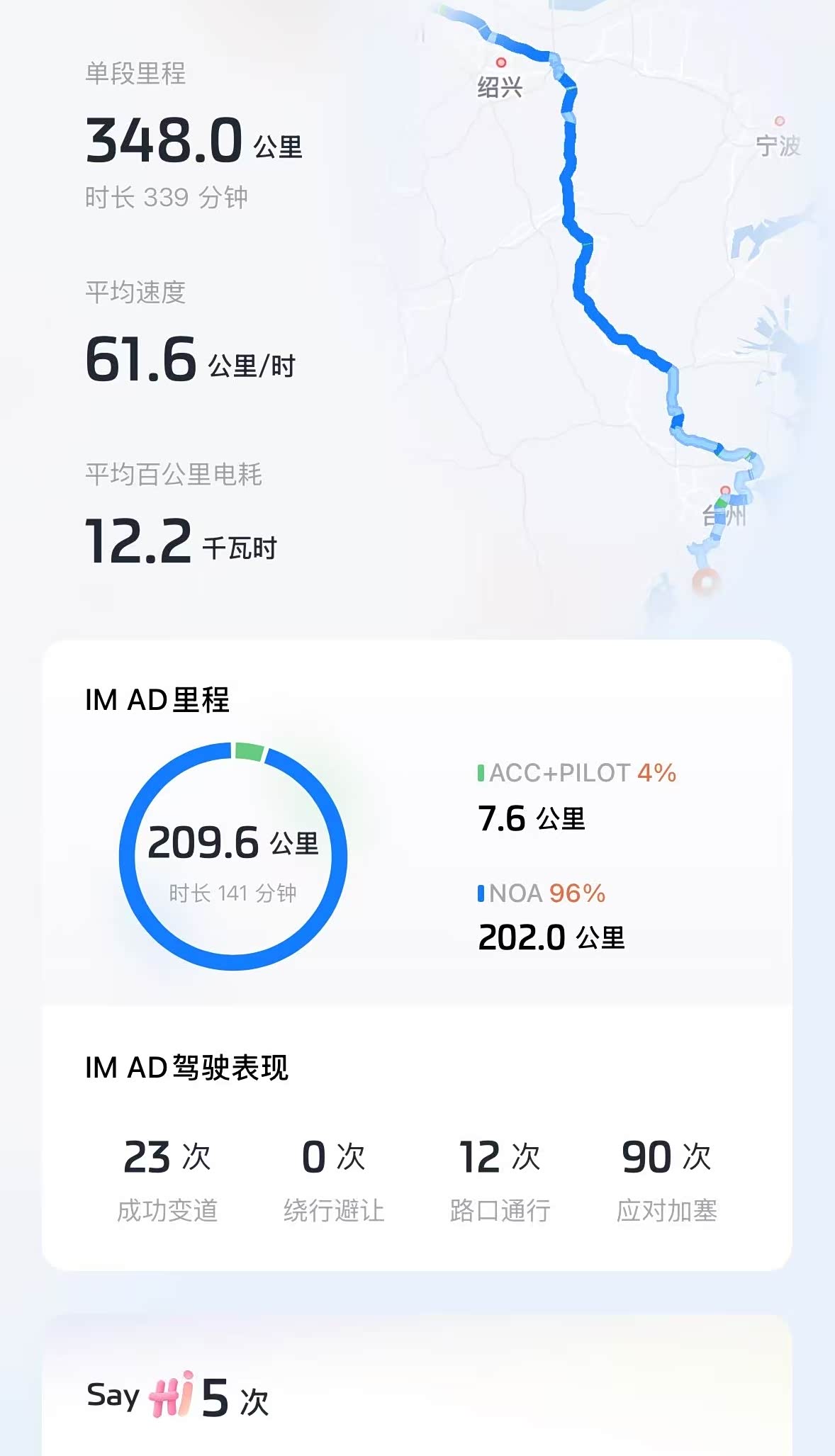 一切准备就绪,正式启程回返程。离除夕还有好几天,路上完全没有想象中的拥堵,回老家台州,全程高速300km,我cltl续航701km,全程高速交给NOA,开着LS6跑高速特别省心,分担了不少疲劳,我高速全程没开空调,能耗竟然在12多,耗电太让我惊讶了,续航非常非常满意。
