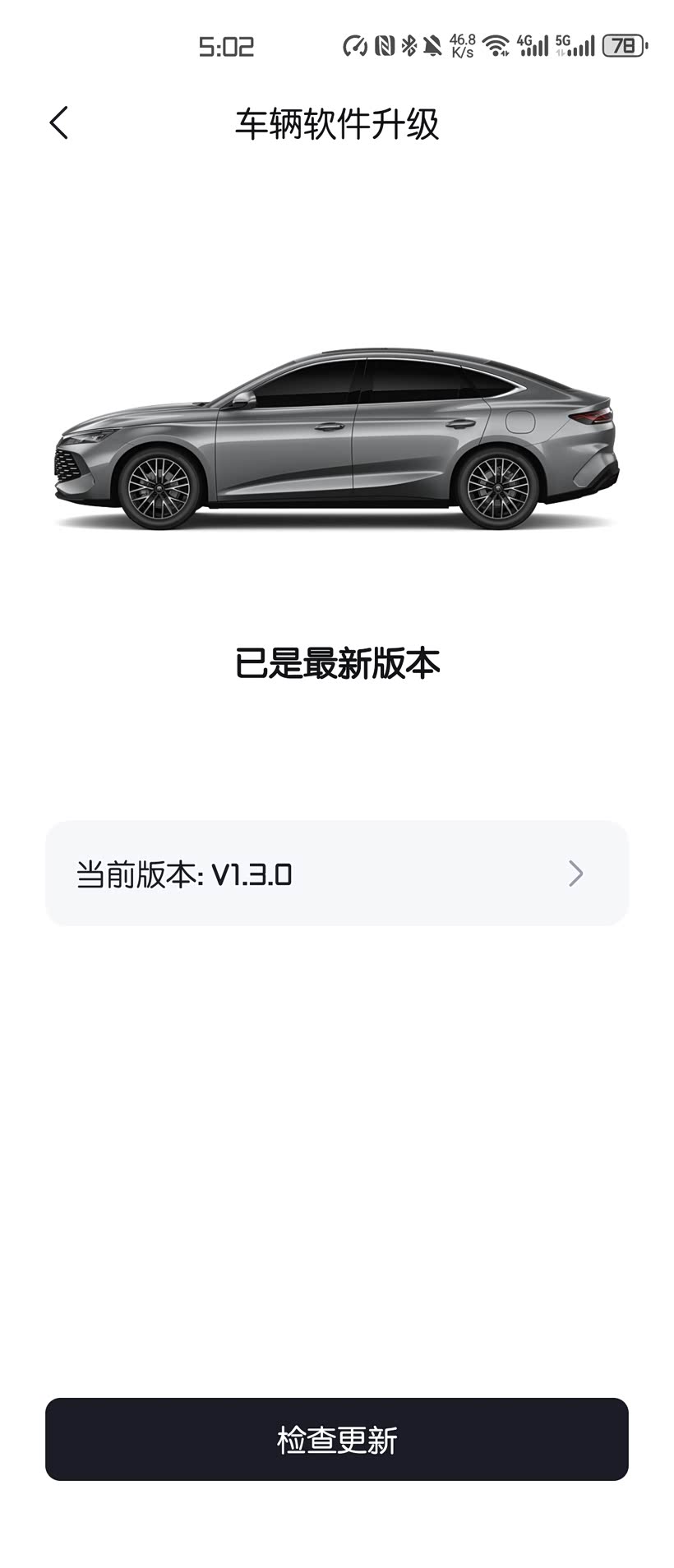 看你现在车机显示是V1.3.0,提示已是最新版本,说明V1.4.0可能还没推给你的车型或配置,你可以再等几天,或者去4S店问问吧