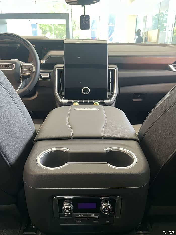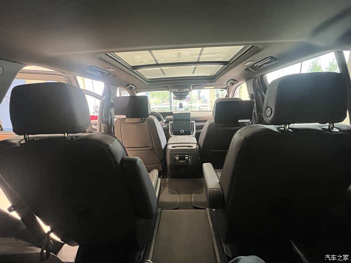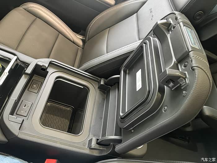 后排娱乐屏,第三排座椅的杯架充电接口,后背箱里的电源接口也统统都有安排上。方便!点赞!