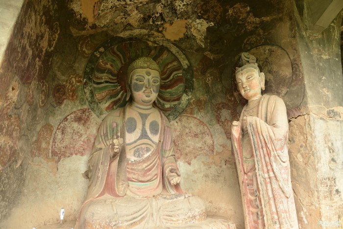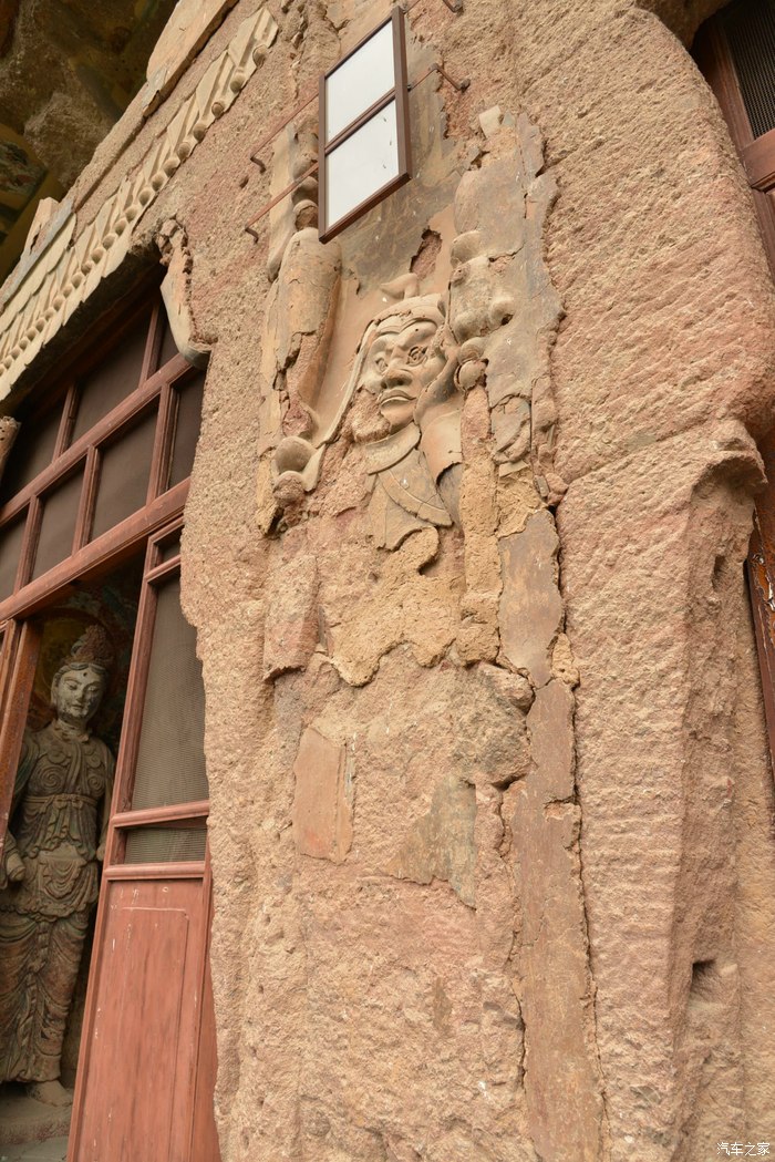 趁着导游在里面讲解,我在门口拍了一张。看:佛像被流水损坏的样子。