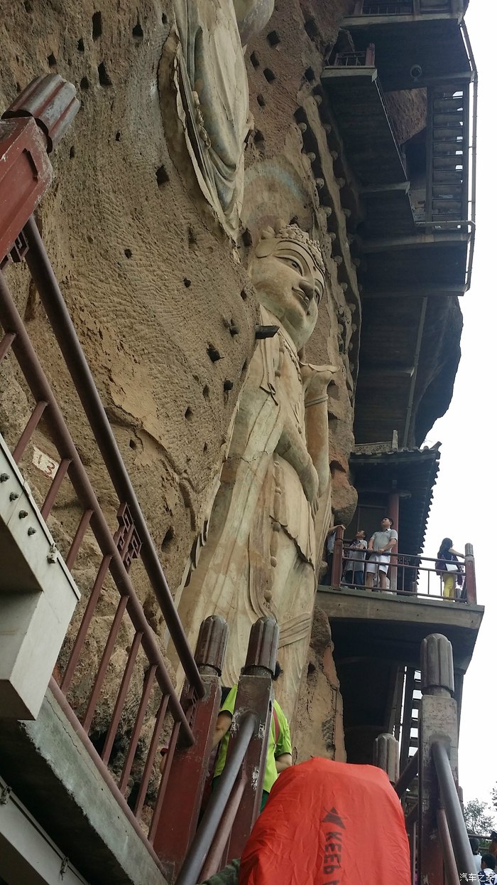 观看石窟,整个的就是沿着凌空栈道往上走。