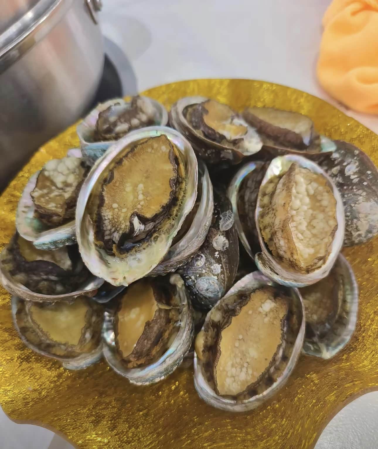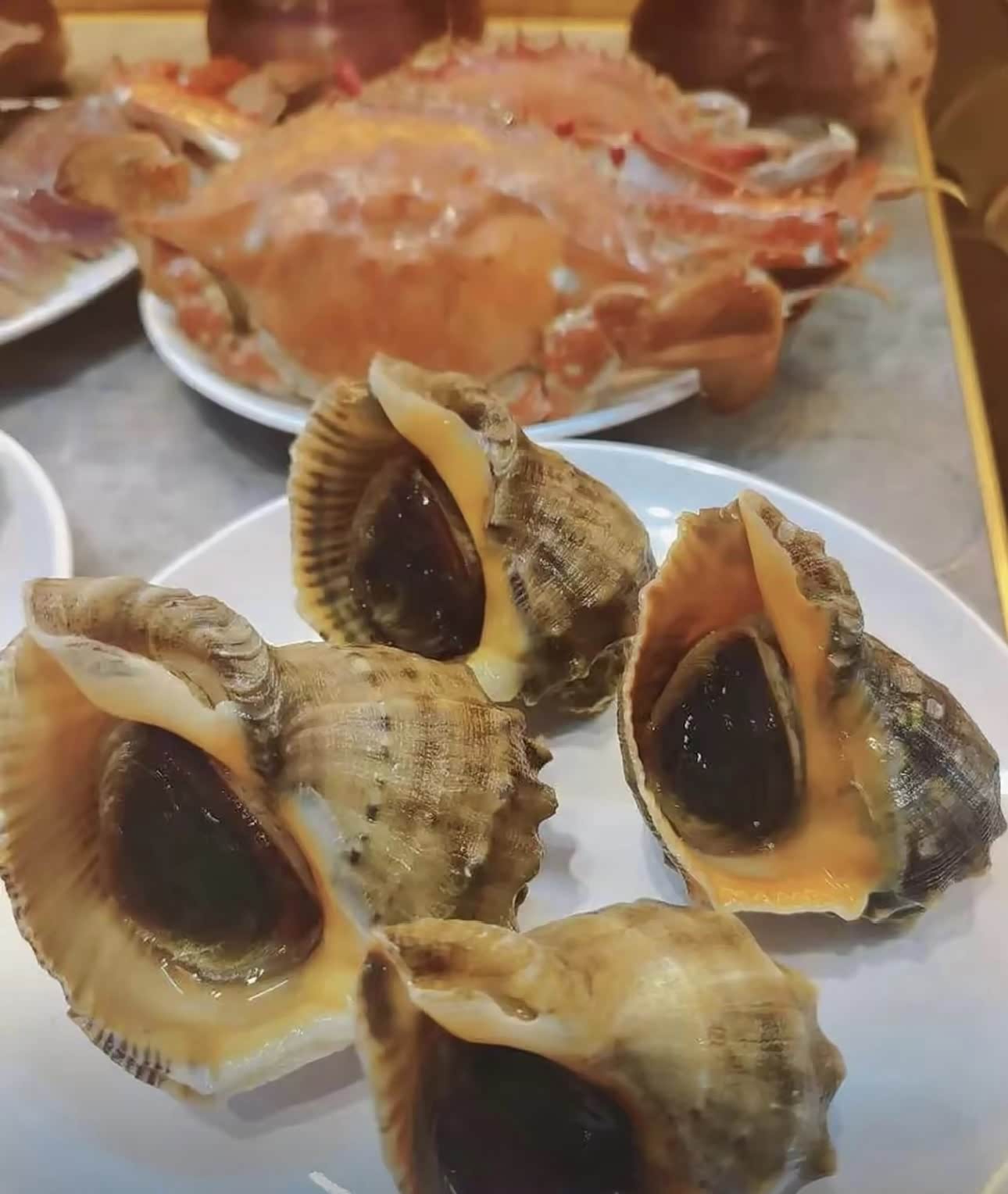 各种海鲜都不放过,先挑自己爱吃的来,这大海螺真不错,平时在家吃都是小心翼翼的摘掉不能吃的尽量不放过一点能吃的,这次只吃纯肉,海螺黄都不要了,主打一个快!