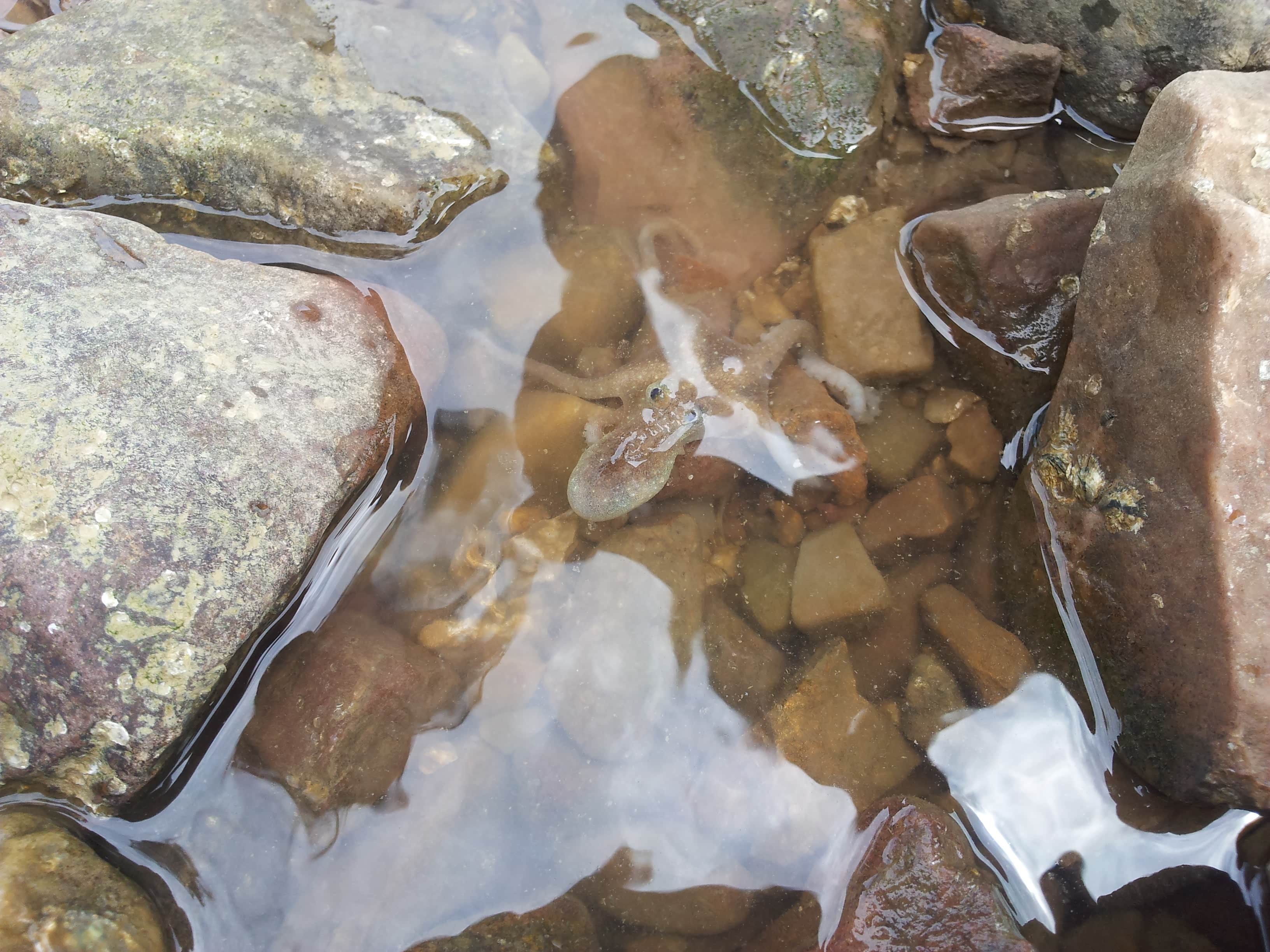 沿着海岸线走,慢慢的落潮再几个石头缝隙处看见了这个小可爱,这个应该是小墨斗呢还是小八爪鱼或者鱿鱼呢,我是真不认识,当然我给放到海水里面去了,防止在这里时间长海水少了再死掉!